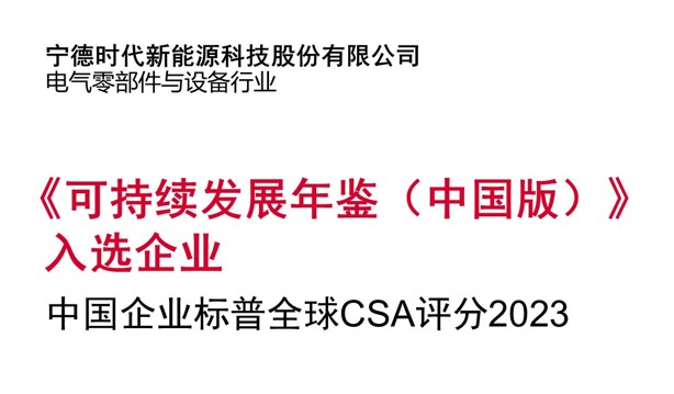 寧德時代再度入選標普全球《可持續發展年鑒(中國版)》